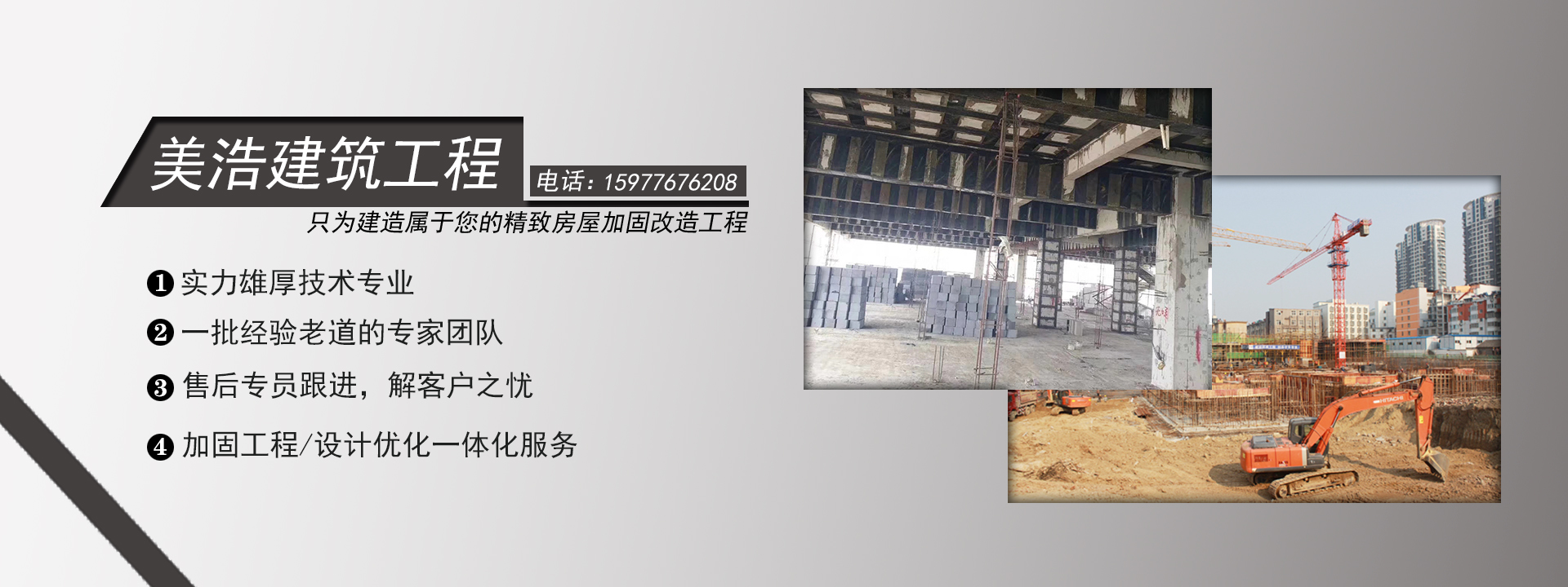 廣西美浩建筑工程有限公司,位于千年古縣,十載新區(qū)的廣西省南寧市邕寧區(qū)。注冊資金1080萬元,是一家專業(yè)提供鋼筋混泥土切割,水下切割、加固、植筋、鉆孔、補(bǔ)強(qiáng)、切割加固、房屋切割加固/破碎拆除、橋梁切割加固/破碎拆除、建筑切割加固/破碎拆除等特種工程。美浩建筑擁有專業(yè)的施工團(tuán)隊(duì)和齊全的設(shè)備為基礎(chǔ),保障客戶項(xiàng)目按質(zhì)按量的順利完成。公司長期與中鐵四局、中鐵建、中交、中建等建筑集團(tuán)合作。目前公司擁有設(shè)備:繩鋸切割機(jī),馬路碟鋸機(jī),水鉆機(jī),風(fēng)炮機(jī),挖機(jī),鉆孔機(jī)等特種設(shè)備。
